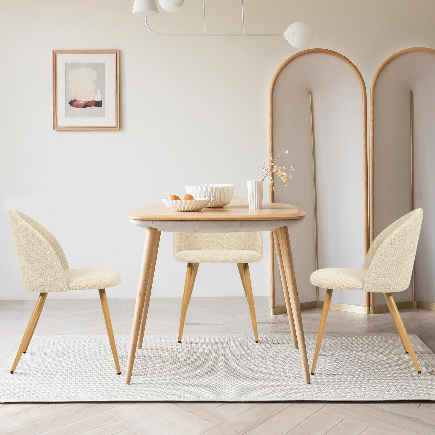 - Space-saving and Easy Movement : Armless chairs are generally more compact compared to chairs with arms. They take up less space, making them ideal for smaller dining areas or when you need to maximize the available space. Without arms, these chairs allow for easy movement in and out of the seat, providing convenience for guests and enhancing the flow of movement around the dining table.