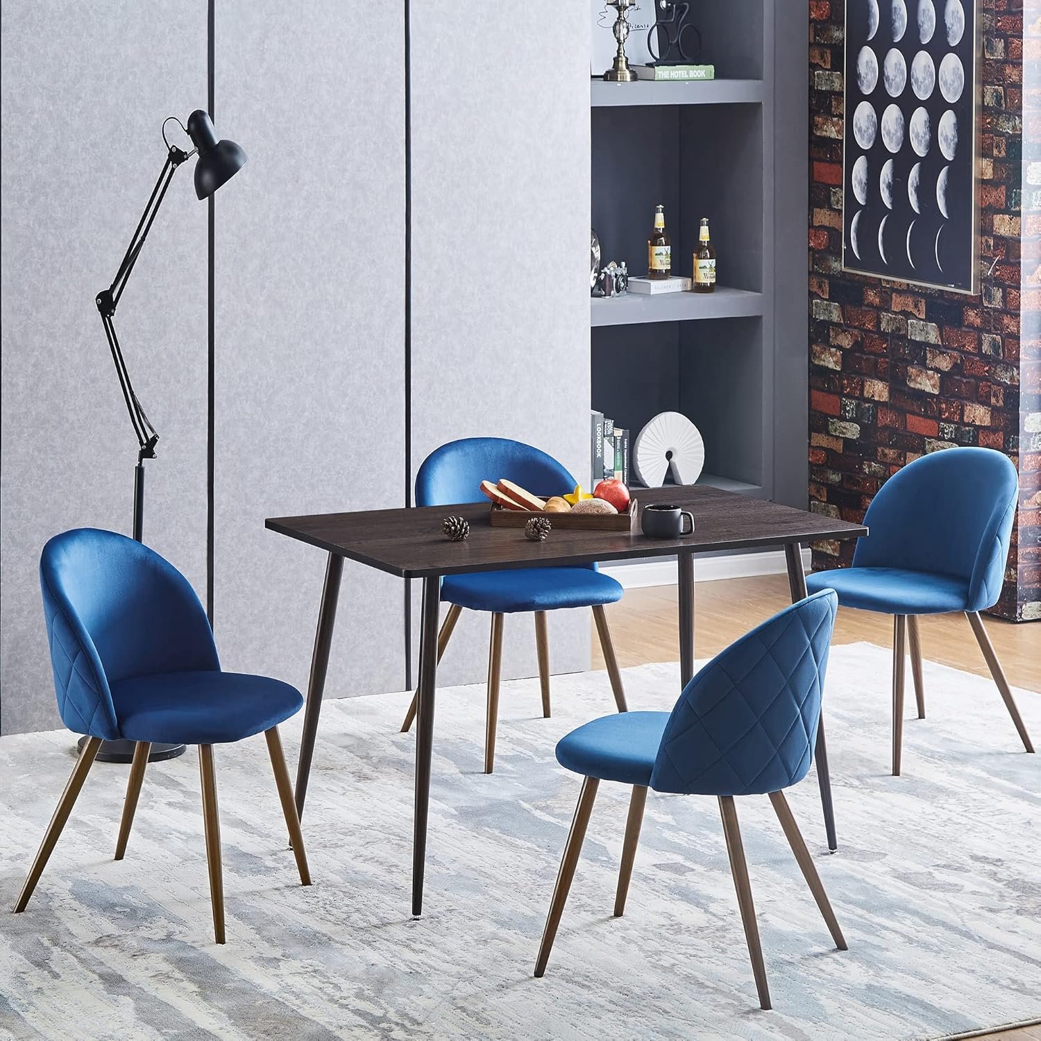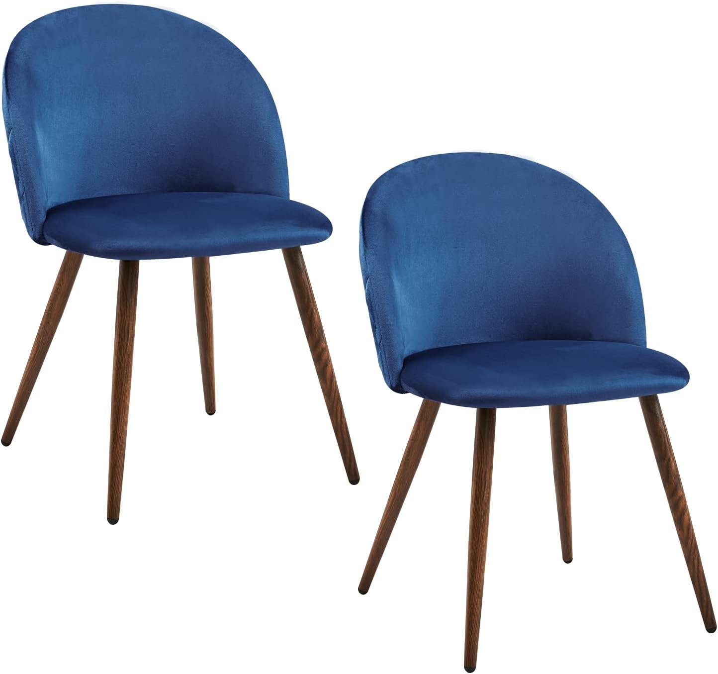 Upholstered Velvet Dining Chair Mid Back Armless with Wood Legs for Home Kitchen Bedroom Living Room, Set of 2, Blue